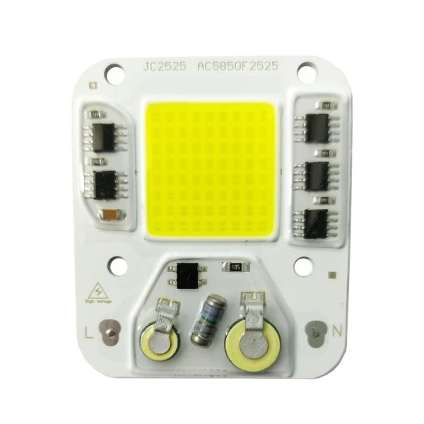 مدیریت حرارت (Heat Management): چیپ COB 50 وات، گرمای زیادی تولید میکند. اگر روی یک هیتسینک (پخش کننده گرما) استاندارد و با خمیر سیلیکون مناسب نصب نشود، طول عمر آن به شدت کاهش مییابد. چیپهای 220 ولت به دلیل تراکم بالای تراشهها، نقاط داغ بیشتری دارند.
